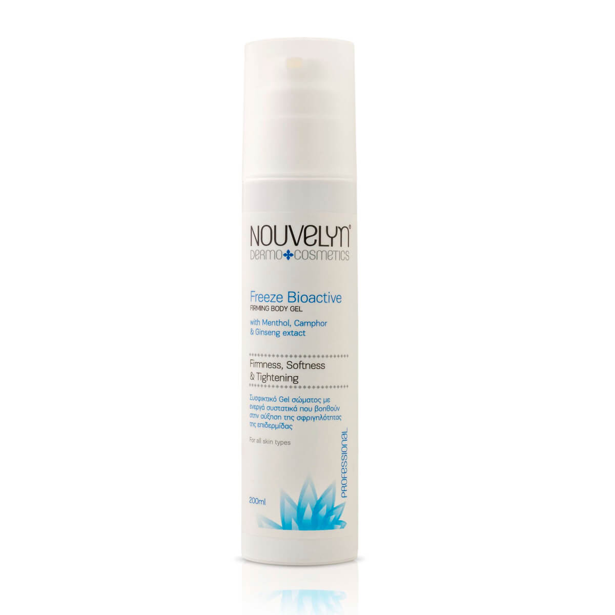 NOUVELYN FREEZE BIOACTIVE FIRMING BODY GEL. Εξαιρετικά δροσιστικό gel με ενεργά συστατικά που βοηθούν στην καταπολέμηση των προβλημάτων χαλάρωσης της επιδερμίδας.